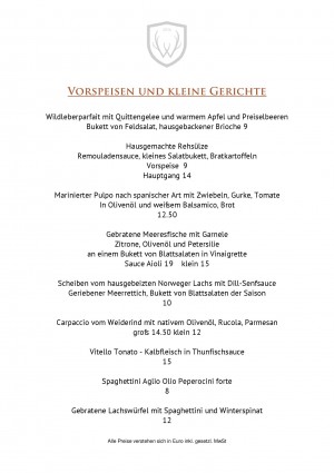 Aktuelle Speisekarte von Restaurant Wildeck in Abstatt