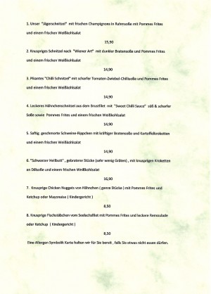 Aktuelle Speisekarte von Rügengrill in Altenkirchen / Rügen
