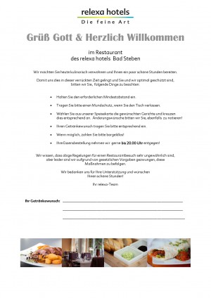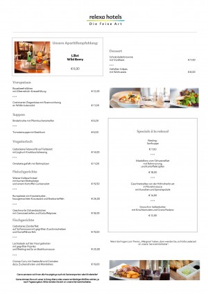 Aktuelle Speisekarte von relexa hotel Bad Steben GmbH in Bad Steben