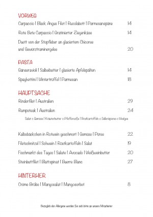 Aktuelle Speisekarte von stilers restaurant im marmite in Barsinghausen