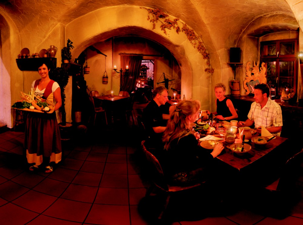 liebenswertes, authentisches, gemütliches Mittelalter-Restaurant, regionale Küche; Stadtführungen mit Mönch Eusebius; Angebote für Gruppen und Catering