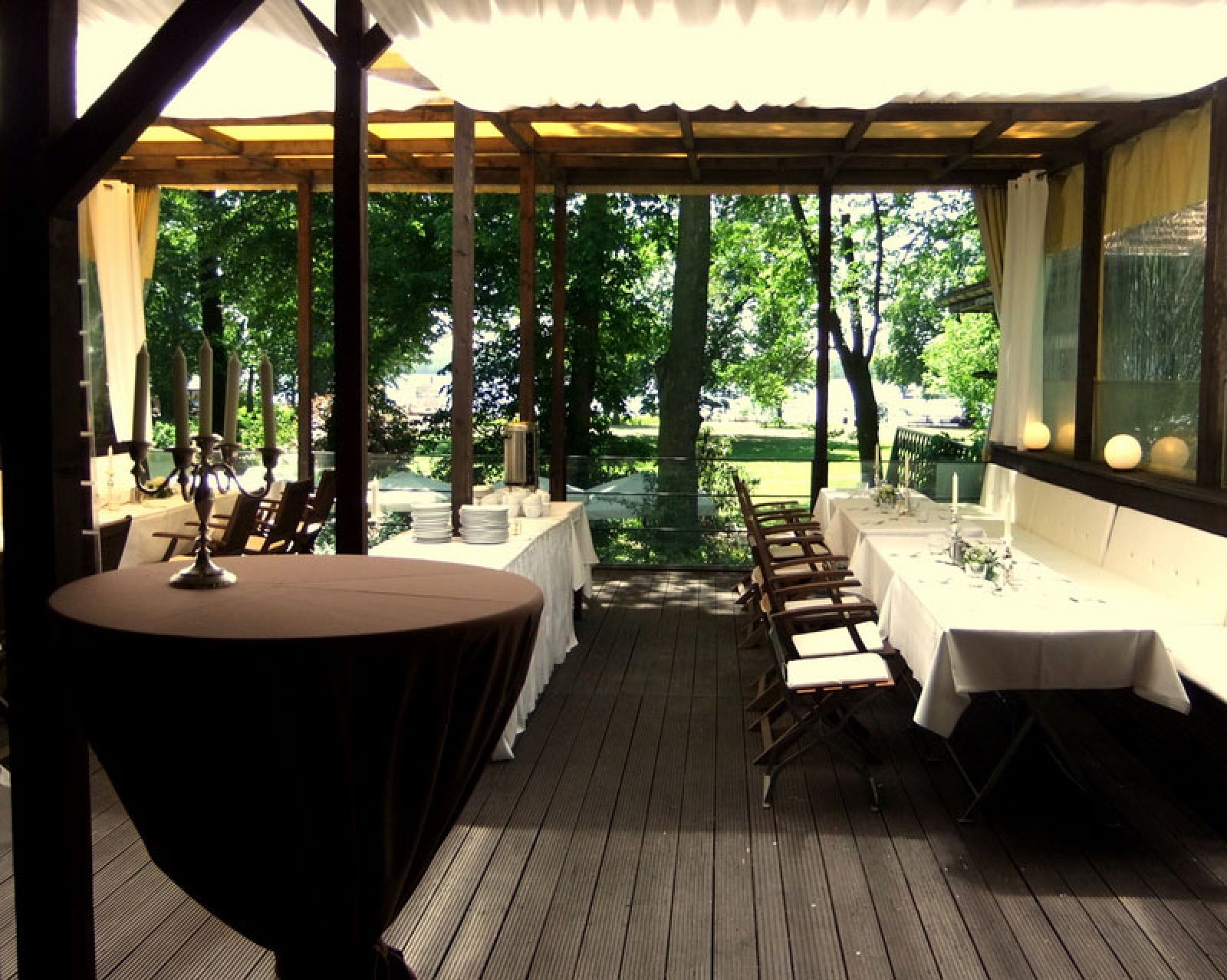 Aber auch für ein frisch gezapftes Bier oder Café und hausgemachten Kuchen, sitzt es sich auf der schönen Terrasse unter großen, alten Platanen mit Blick auf die Dampferanlegestelle wunderbar.