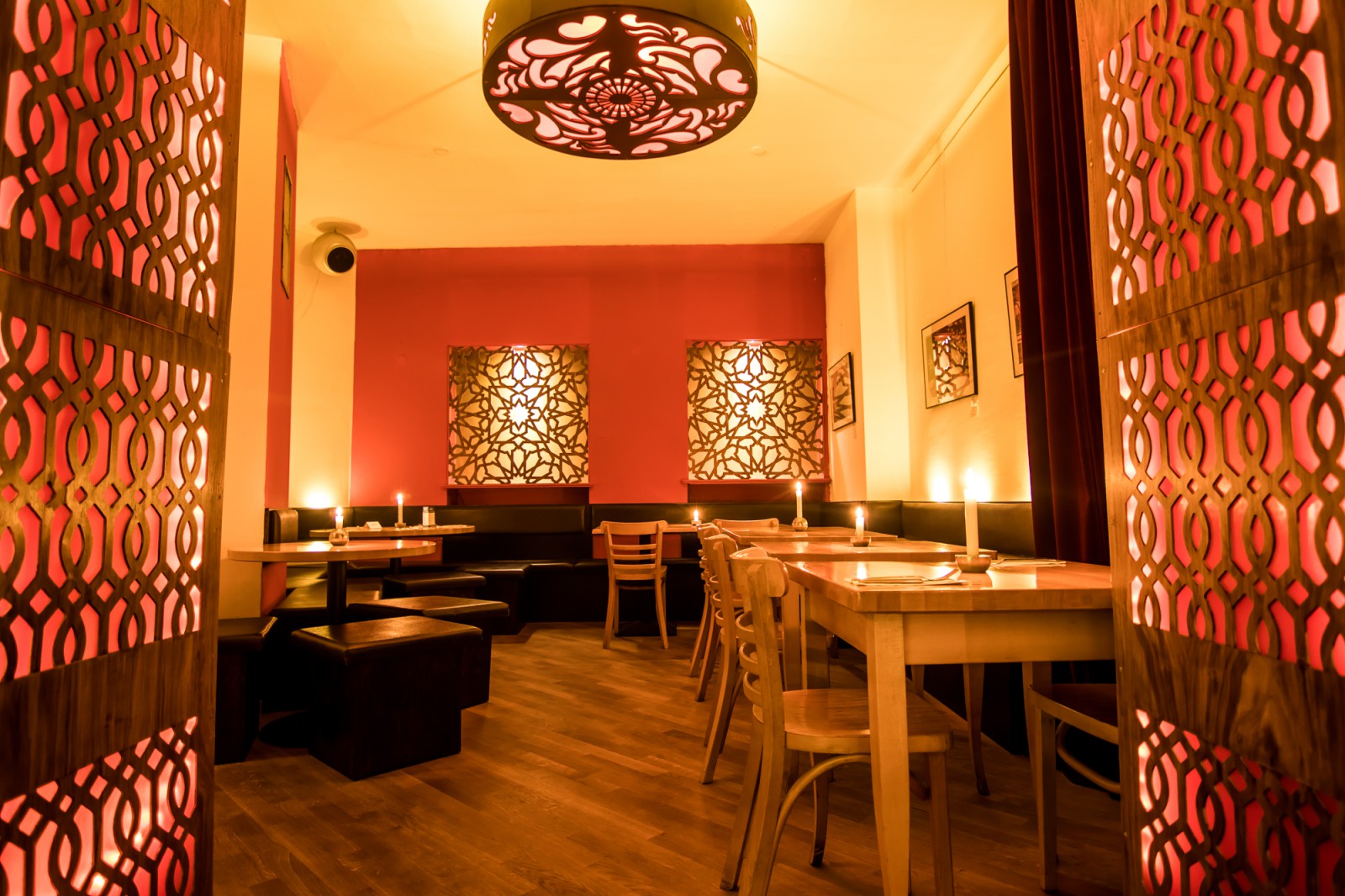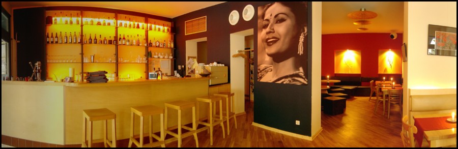 Das Auffällige am Restaurant Meena kumari, benannt nach der leider viel zu früh verstorbenen, großen Schauspielerin, ist die stilvolle Mischung aus Restaurant, Bar und Café, verbunden mit der Kunst der indischen Küche.