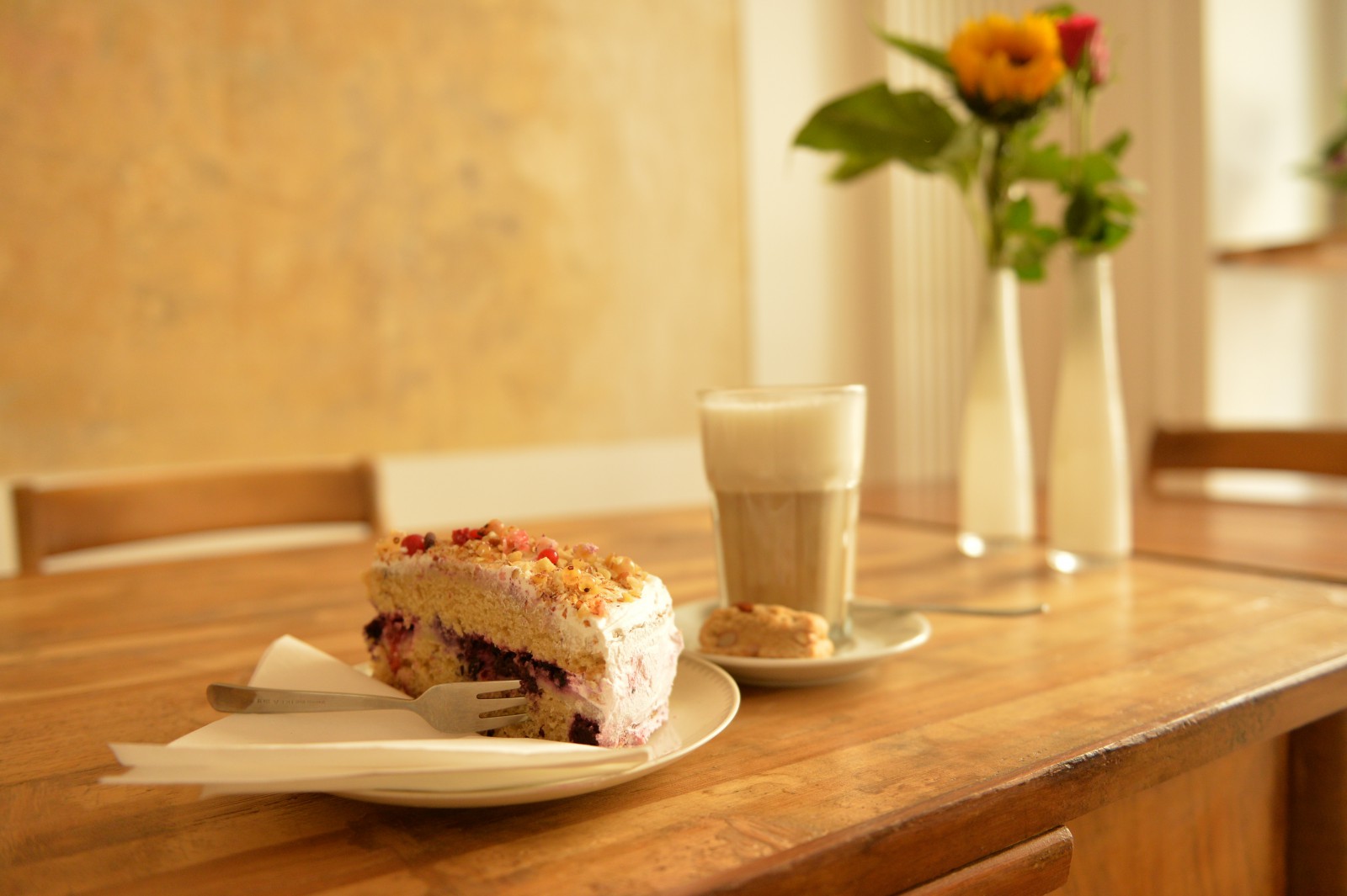 Ebenso bunt gemischt wie der Stadtteil und unser Publikum ist unser kulinarisches Angebot. Ob du lieber ein englisches Frühstück, ein mediterranes Tomate-Tofu-Ciabatta, eine wärmende Suppe nach Rezepten aus aller Welt, eine unserer herzhaften Burger-Kreationen oder einen hausgemachten Kuchen verzehrst – in Berlin-Neukölln in deinem Café Pêle-Mêle ist einfach für jeden Geschmack etwas dabei. Und das selbstverständlich alles zu 100% vegan und in Bio-Qualität.