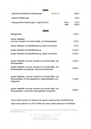 Aktuelle Speisekarte von Hotel-Gasthaus Krone in Bötzingen