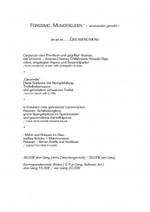 Aktuelle Speisekarte von Forissimo Aromen, Vielfalt, Genuss in Bonn