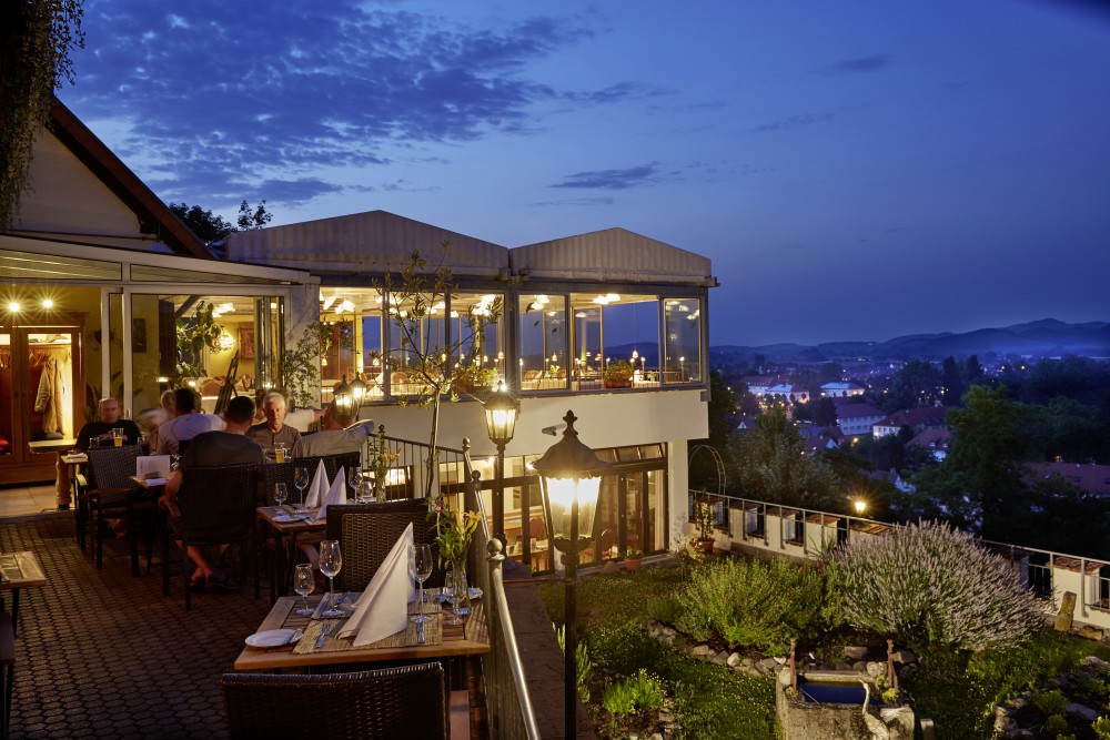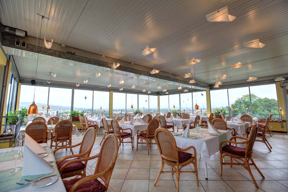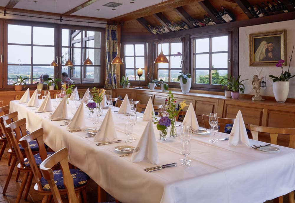 Auf dem Münsterberg, mit einzigartigem Blick über Kaiserstuhl, Tuniberg und Schwarzwald sitzen Sie im Sommer und im Winter auf unserer verglasten Panoramaterrasse und genießen Ihr Menü mit begleitenden Weinen aus der Lage, auf die Sie während des Essens blicken.
