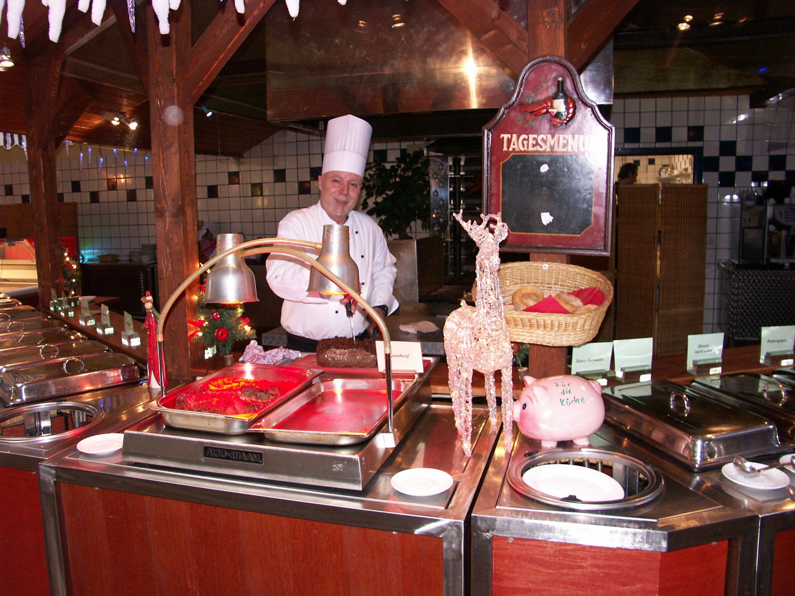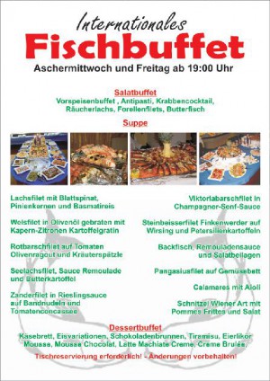 Montag bis Samstag - von 11.30 Uhr bis 14.00 Uhr - Großes Mittags-Buffet mit bis zu 14 verschiedenen Gerichten (auch Vegetarisch) inkl. Salatbuffet, Tagessuppe und Desserts.