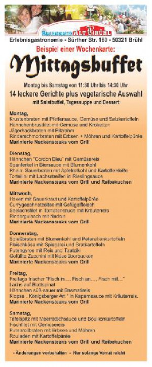 Restaurant Brauhausgarten Alt Brühl in BrühlRestaurant Brauhausgarten Alt Brühl in Brühl - Veranstaltungen des RestaurantsAbendbuffet Deluxe