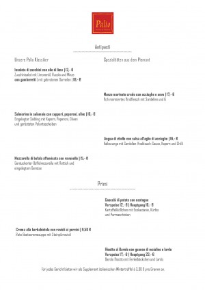 Aktuelle Speisekarte von Palio Taverna & Trattoria im Hotel Fürstenhof in Celle