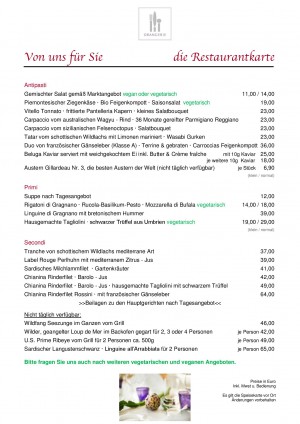 Italienische Küche mit frischen Produkten sind selbstverständliche Privilegien. Unsere Küche entstammt bester italienischer Tradition, ergänzt und angereichert mit internationalen Anregungen und Kreationen.