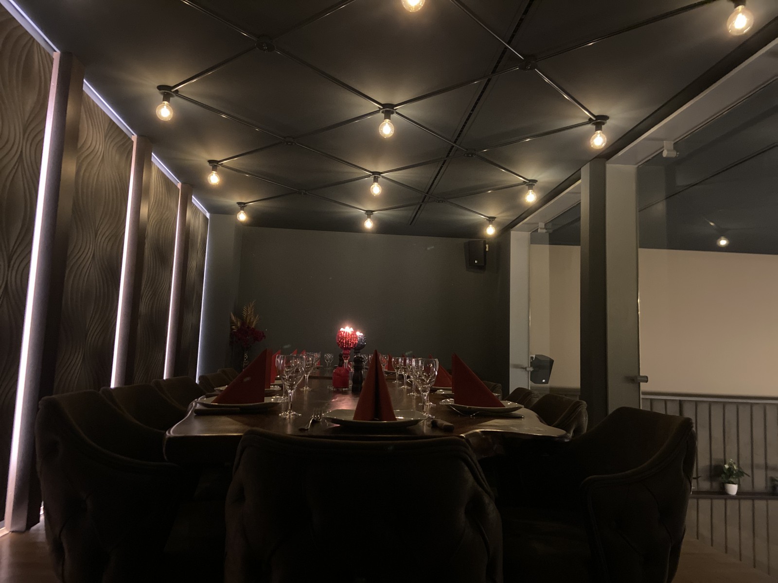 Das Restaurant mit Bar verfügt über 100 Sitzplätze, wovon 20 in unserem exklusiven Séparée sind, perfekt für Feiern, oder Geschäftsabschlüsse. Das Lokal steht auch für geschlossene Gesellschaften für bis zu 130 Personen zu Verfügung.