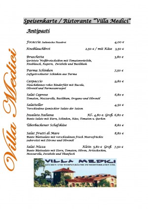 Aktuelle Speisekarte von Hotel Ristorante Villa Medici in Enkenbach-Alsenborn