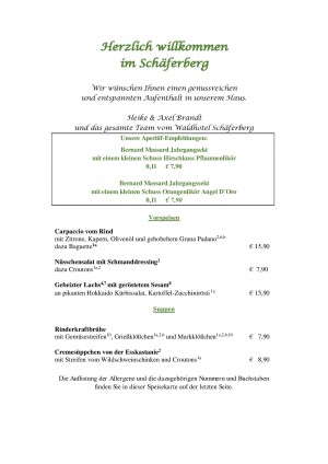 (Die angegebenen Küchenzeiten stehen für Annahme der letzten Bestellung aus der Speisekarte)
