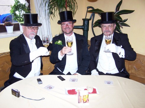 Obwohl gar nicht dazu verpflichtet, kam wieder das freundliche Team (Chefin, Kollegin und Kellner) ins Spiel. Nach fast eine Stunde Telefonieren, konnte ein Super-DJ aus Magdeburg gefunden werden, der sich sofort bereit erklärte, den Abend zu „retten“, (Betablocker wieder einpacken).