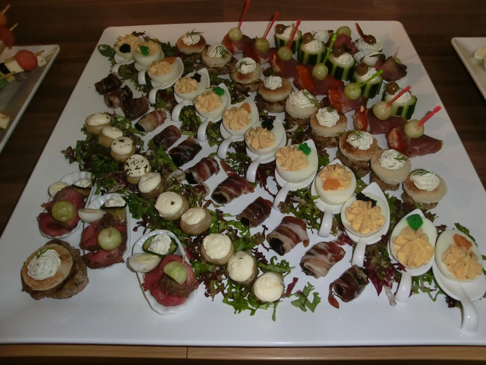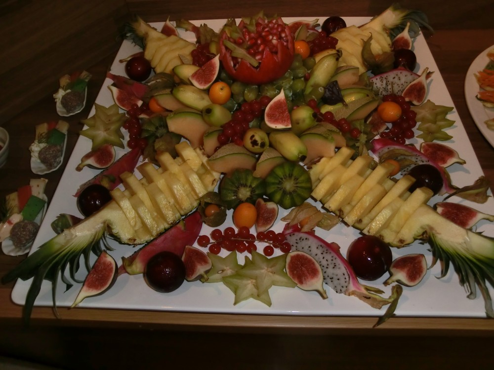 Besonders zu loben ist das Überraschungsbuffet. Nicht zuletzt auch wegen der tollen Dessert-Pyramide mit Feuerfontänen, welche mit vielen kleinen verschiedenen Köstlichkeiten in kleinen Schälchen angerichtet war.