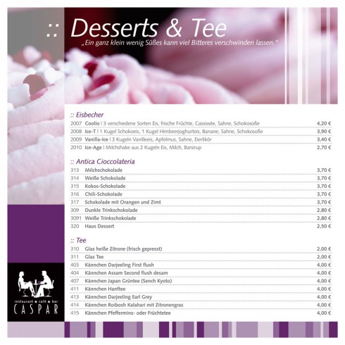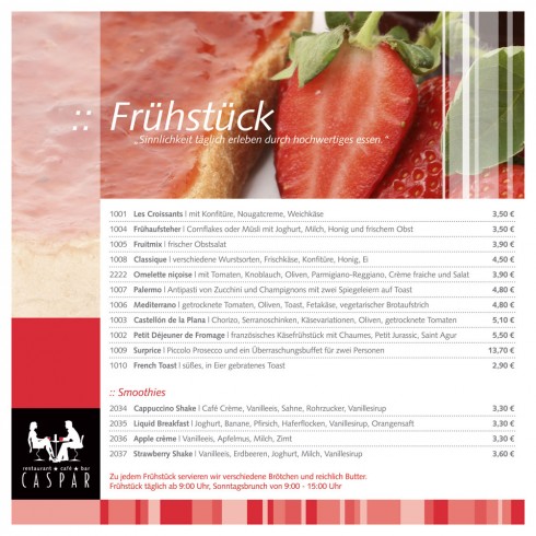 Das Erfolgsrezept des Caspar gründet sich allerdings nicht nur auf seinen hervorragenden Service. Es ist in erster Linie das warme, gemütliche Ambiente und die moderne Einrichtung, die zu einem Besuch einladen. Vielleicht ja zum Brunch an einem der nächsten Sonntage.
