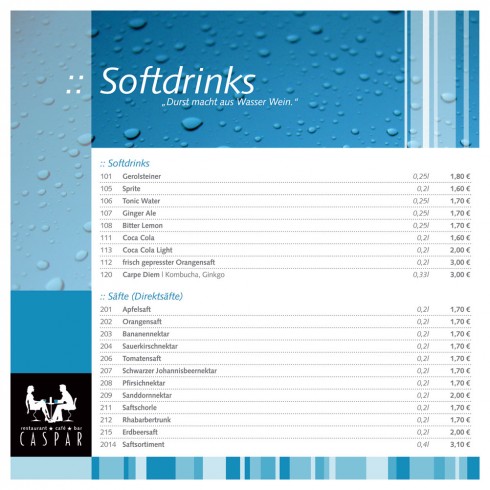 Doch auch wenn es mal etwas ruhiger zugehen soll, bietet das Caspar die richtige Atmosphäre. Ob für Familienfeiern oder Seminartagungen, das Lokal verfügt über Räumlichkeiten und ein Vielzahl an Equipment, die jede Veranstaltung zu einem vollen Erfolg machen. Auch ein hauseigener Cateringservice zählt zum Angebot der Gastwirtschaft.