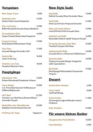Aktuelle Speisekarte von Tresor in Hannover