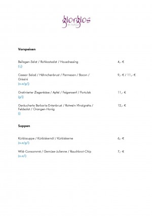 Aktuelle Speisekarte von Giorgios im Hofgut in Hohenstein