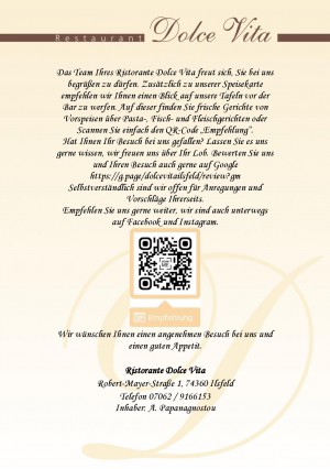 Aktuelle Speisekarte von Dolce Vita Restaurant in Ilsfeld