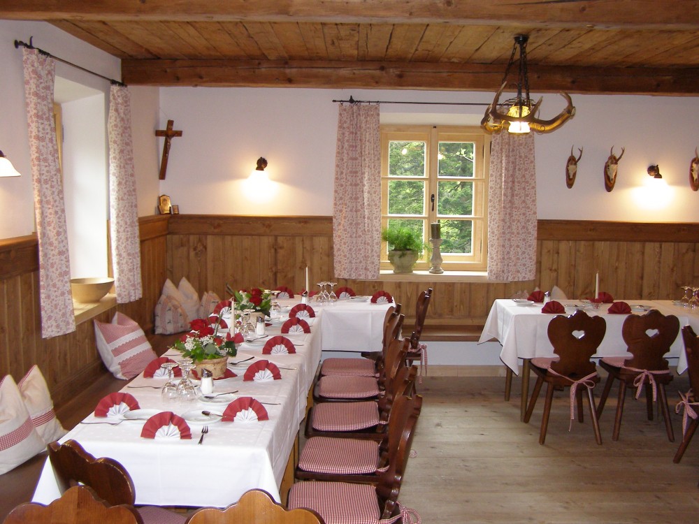 Die Küche richtet sich nach dem Angebot der Jahreszeiten. in der überschaubaren, aber immer mit frischen Speisen bestückten Karte können Sie zwischen bayerisch deftigen Mahlzeiten, wie Schweinsbraten, Krautwickerl, Lüngerl, Fischgerichten, wie frische Forelle, gefüllter Saibling oder Vollwertgerichten wie Dinkelzucchipflanzerl, Kartoffelpflanzel, Gemüsestrudel auswählen.