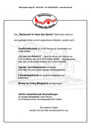 Aktuelle Speisekarte von Haus des Sports in Kiel