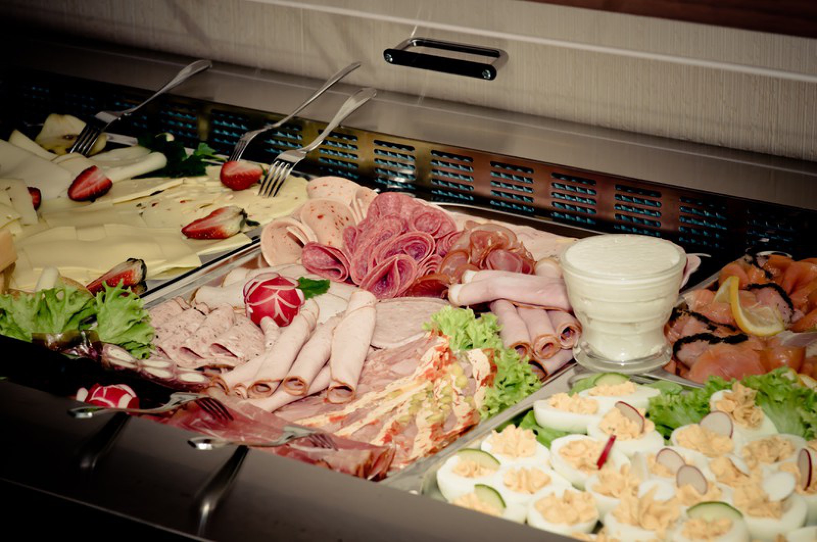 Das Frühstücksbuffet vom Feinsten, alles was das Herz begehrt. Von edlen Pasteten über Lachs, exclusive Käsesorten, reichhaltige Wurstauswahl und nicht zuletzt der