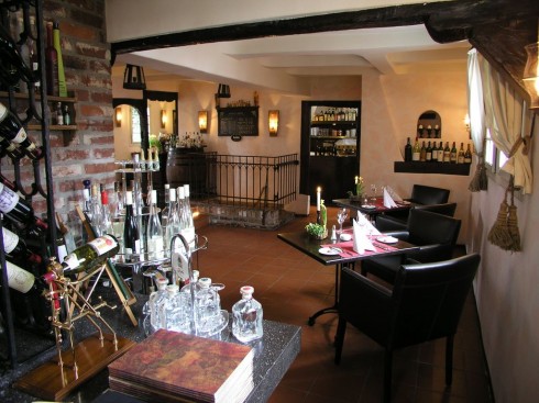Im Weinkeller, einem historischen Tonnengewölbe unterhalb des Fachwerkhauses, wird unter idealen Bedingungen in Tonröhren ein ausgesuchtes Weinsortiment europäischer Spitzenweine, Sekte & Champagner, sowie einiges an Raritäten bereit gehalten.