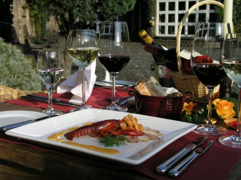 Zusätzlich wird in einem alten Kellergewölbe ein ausgesuchtes Weinsortiment bereit gehalten. In der warmen Jahreszeit sitzt man am besten auf der lauschigen Restaurantterrasse unter alten Bäumen oder genießt einen Aperitif im Garten am Teich.