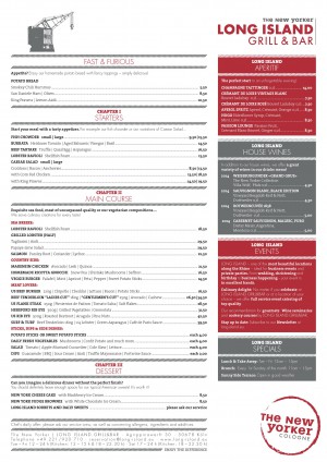 Aktuelle Speisekarte von The New Yorker | LONG ISLAND.RESTAURANT&BAR in Köln