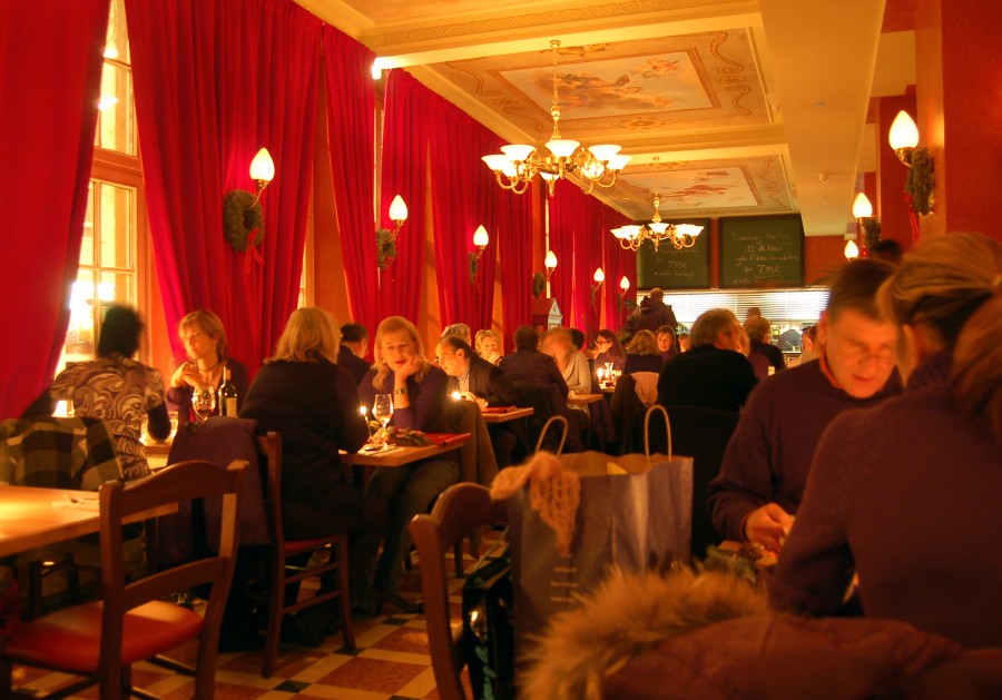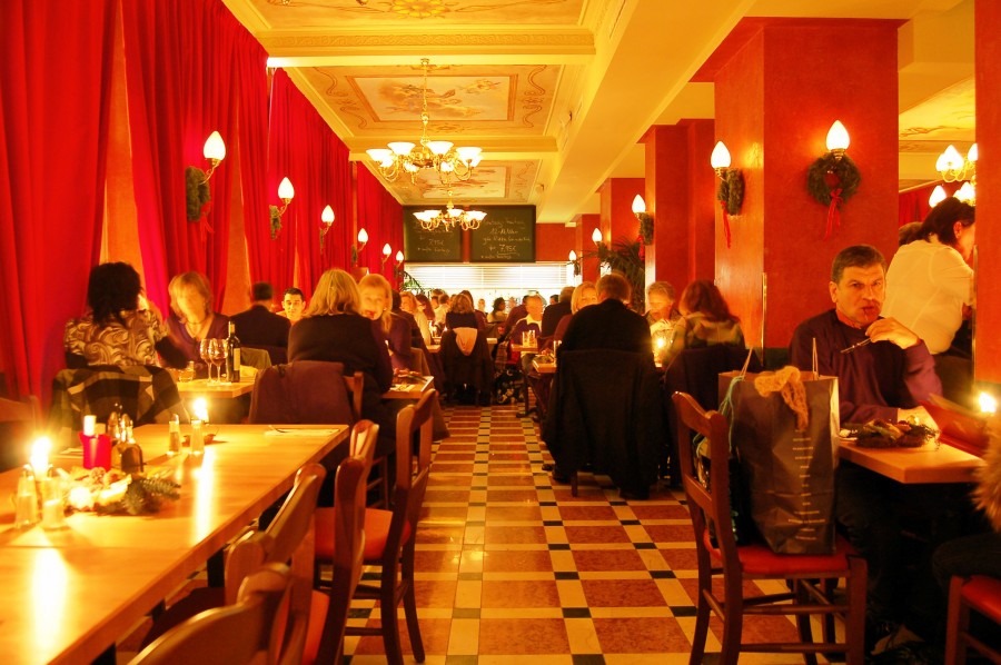 Prächtige Fresken, handgeschnitzte Wandverkleidungen, Marmorböden, ein riesiger Kronleuchter sowie lange rote Samtvorhänge – herzlich Willkommen im XII APOSTEL Restaurant Köln.