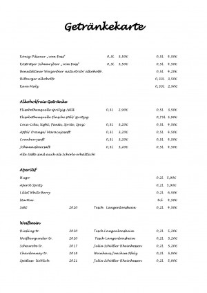 Wir servieren Ihnen internationale Gerichte sowie typische hessische Spezialitäten. Zusätzlich wird unser Angebot durch wechselnde saisonale Empfehlungen und spezielle Tagesangebote ergänzt.