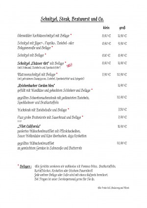 Wir haben im Biergarten außen Platz genommen, und haben ohne Probleme von der gesamten Karte bestellen können. Wir können bestätigen, dass das Kochkäseschnitzel sehr lecker ist, die anderen Gerichte waren eher in der Kategorie "OK", aber das Preis-Leistungsverhältnis ist wirklich unschlagbar. Wir kommen wohl wieder.