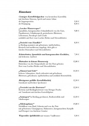 Aktuelle Speisekarte von Weinschenke Restaurant Hilchenkeller in Lorch