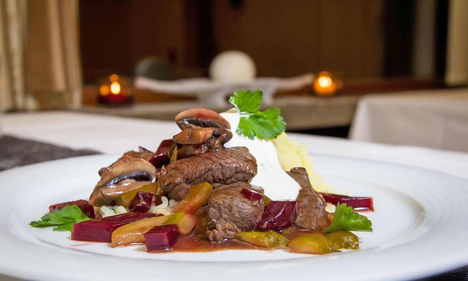 Über den Niederungen des Alltags bieten wir frische deutsche Küche in entspannter Atmosphäre. Ob zu zweit oder im Freundeskreis – genießen Sie auf den Höhen des Berges