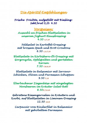 Aktuelle Speisekarte von Oranien in Nastätten