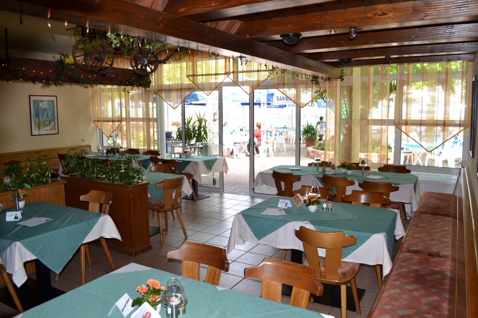 Unser Biergarten bietet bis zu 150 Sitzplätze, auch dort werden ihnen selbstverständlich alle Speisen serviert. Während die Erwachsenen gemütlich im Biergarten sitzen, können die K
