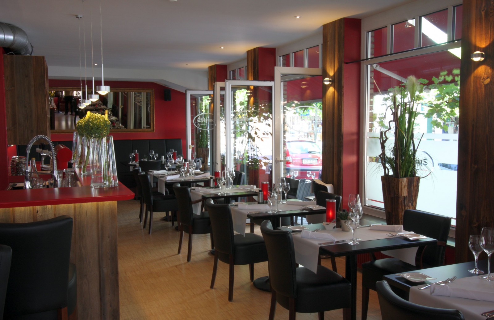 Die Modernisierung ist vollbracht: Neue gemütliche Lounge-Bänke, sonnenverbranntes Holz einhundert Jahre alter bayrischer Berghütten, dekoriert an Stützen und Theke, ergänzt mit puristischen Leuchten, die eine wohlige Wärme ausstrahlen, und nicht zuletzt neue Hochtische, an denen der bekannte Genuss im SPITZWEG auch mal kurz und intensiv sein darf: Vor dem Theater, nach der Veranstaltung oder dem Kino - einfach spontan und ungezwungen im SPITZ den Abend genießen. Das neue Spitzweg: Restaurant | Wein | Bar