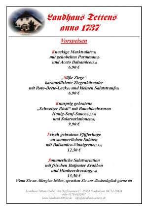 Aktuelle Speisekarte von Landhaus Tettens in Nordenham