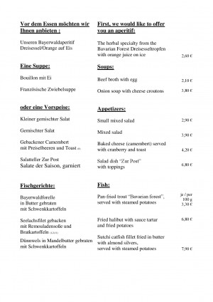 Aktuelle Speisekarte von Hotel zur Post - Restaurant in Obernzell/ OT Erlau bei Passau