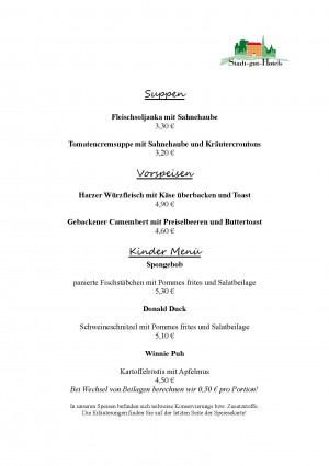 Aktuelle Speisekarte von SgH Auerhahn in Quedlinburg/ OT Bad Suderode