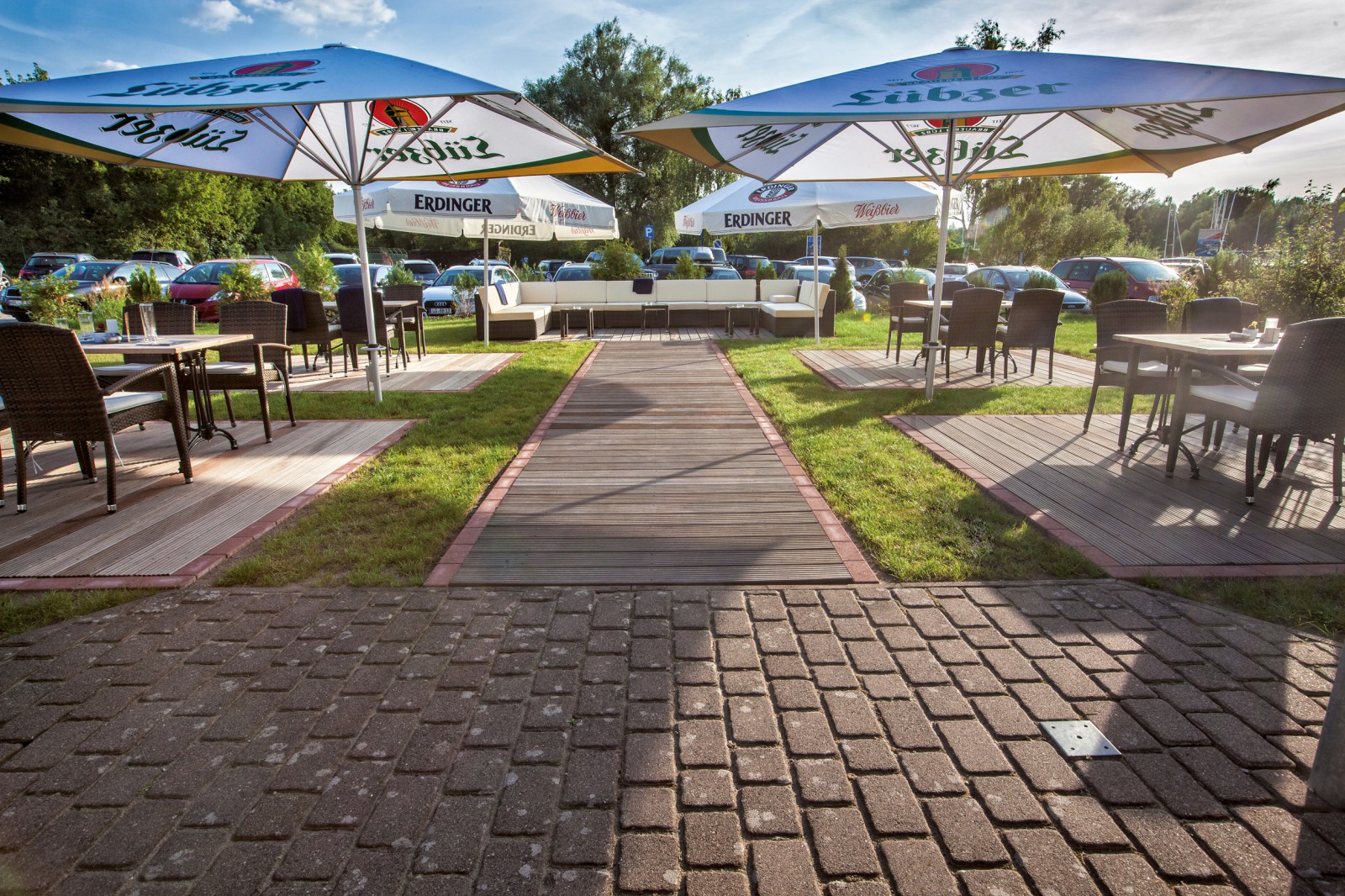 Der Schiffsbugtresen im Hafenbistro des Hafendorfs Müritz ist Treffpunkt für Skipper, Bootscrews und Landleute. Der Radweg rund um die Müritz führt direkt am Captain's Inn vorbei.