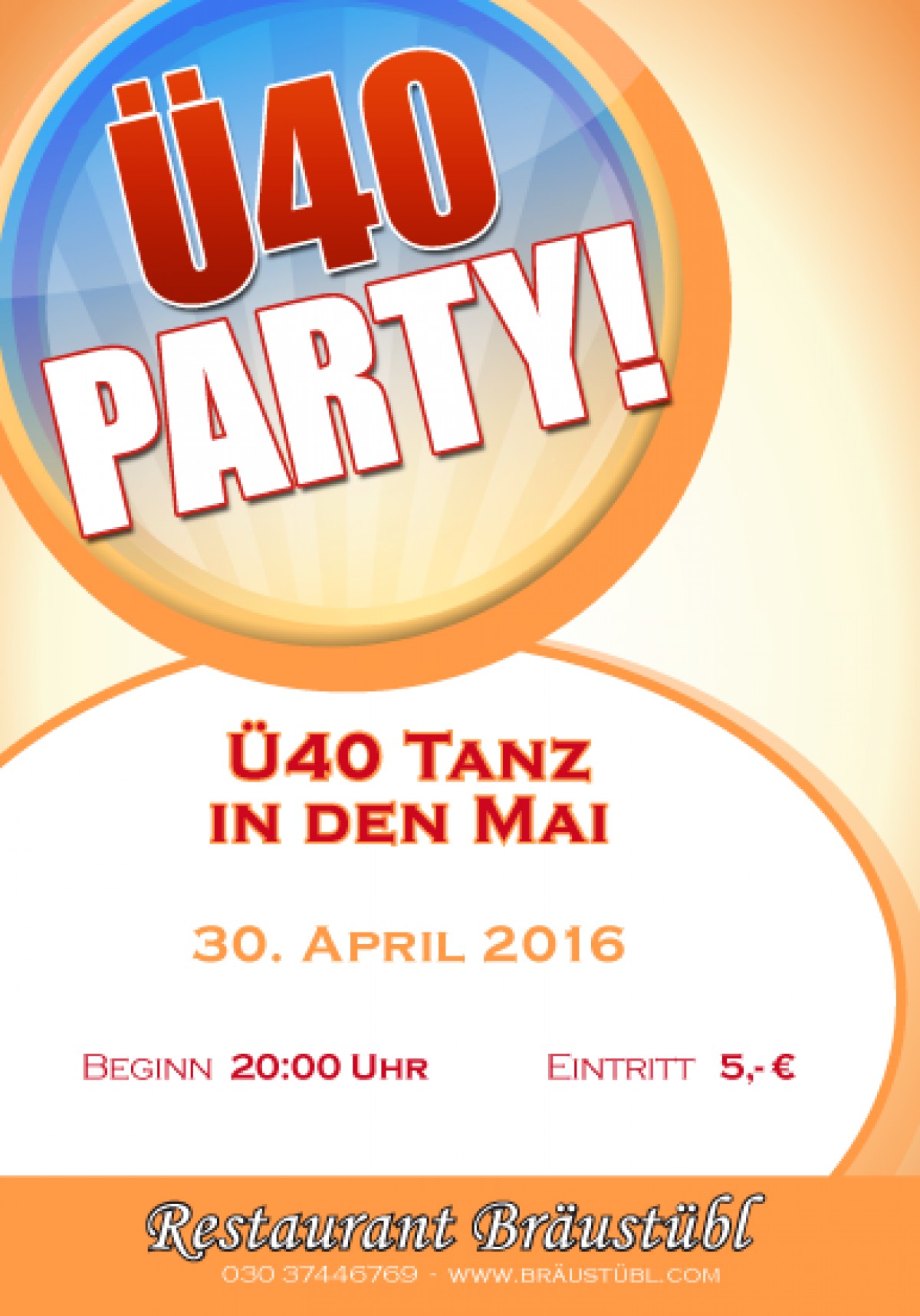»Ü40 Tanz in den Mai« eine Veranstaltung von Braustübl Restauration in Berlin ![]() exists ![]() 30.04.2016 - Ü40 Tanz in den Mai