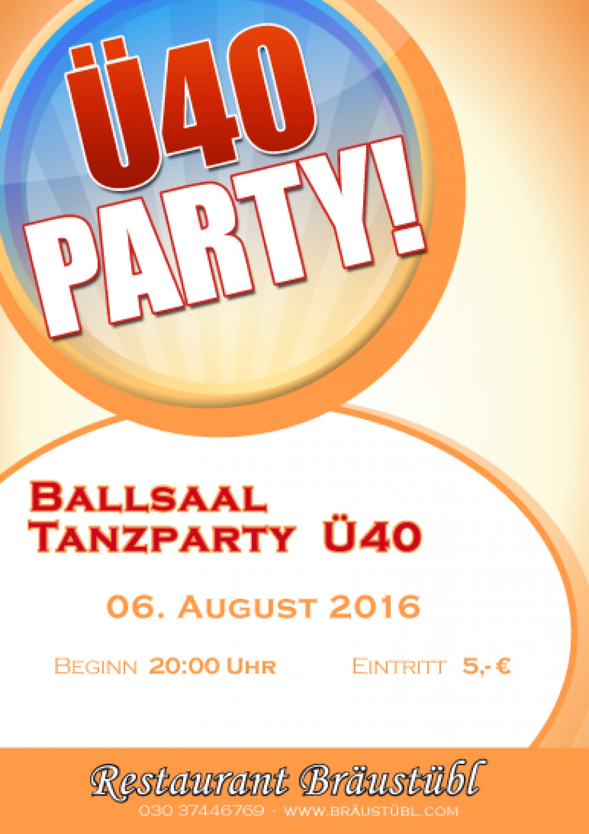 »Ballsaal Tanzparty Ü40 « eine Veranstaltung von Braustübl Restauration in Berlin ![]() exists ![]() Ballsaal Tanzparty Ü40
