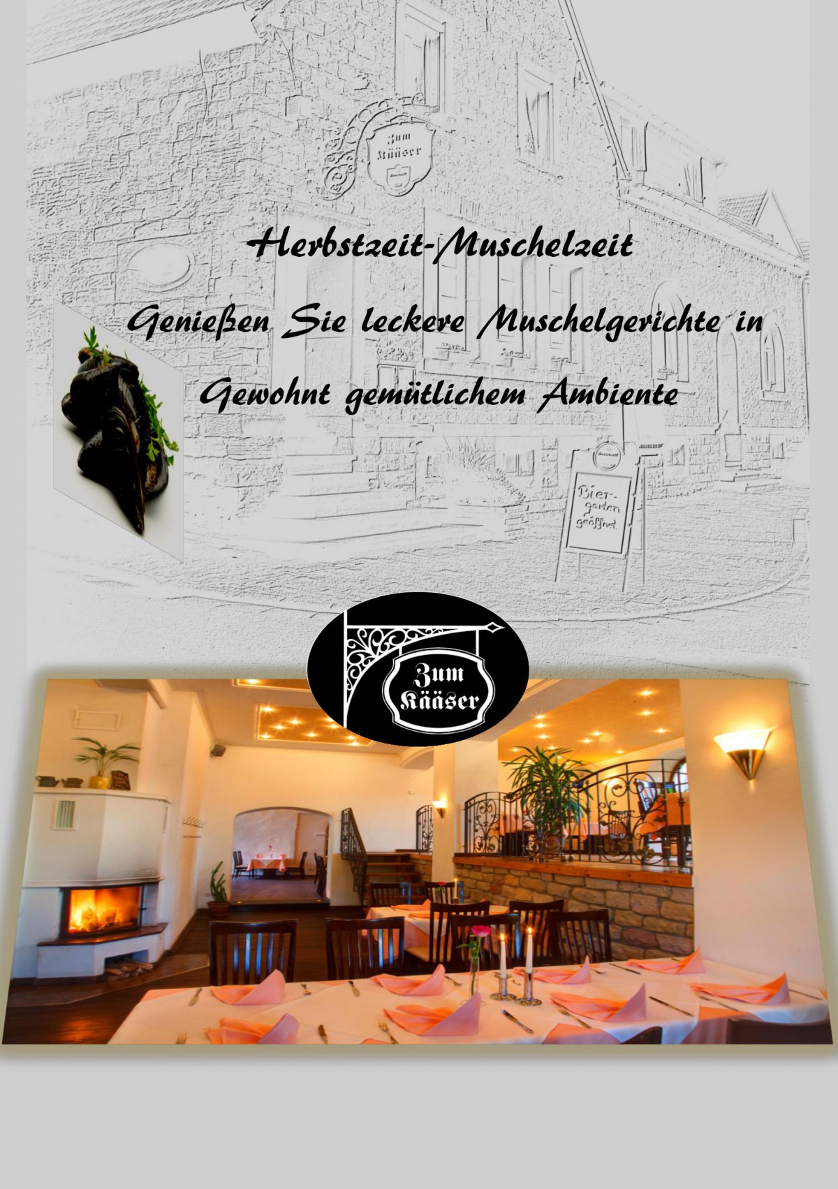 »HERBSTZEIT-MUSCHELZEIT« eine Veranstaltung von Zum Kääser in Erzenhausen exists ![]() Geniessen Sie frische Muscheln mit leckeren Saucen a la Minute zubereitet in unserem gemütlichen Restaurant