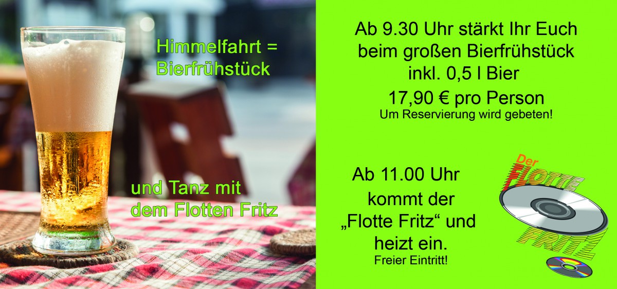 »Himmelfahrt « eine Veranstaltung von Hotel Dreimädelhaus in Espelkamp ![]() exists ![]() Ab 9:30 Uhr können Sie sich beim großen Bierfrühstück stärken.
