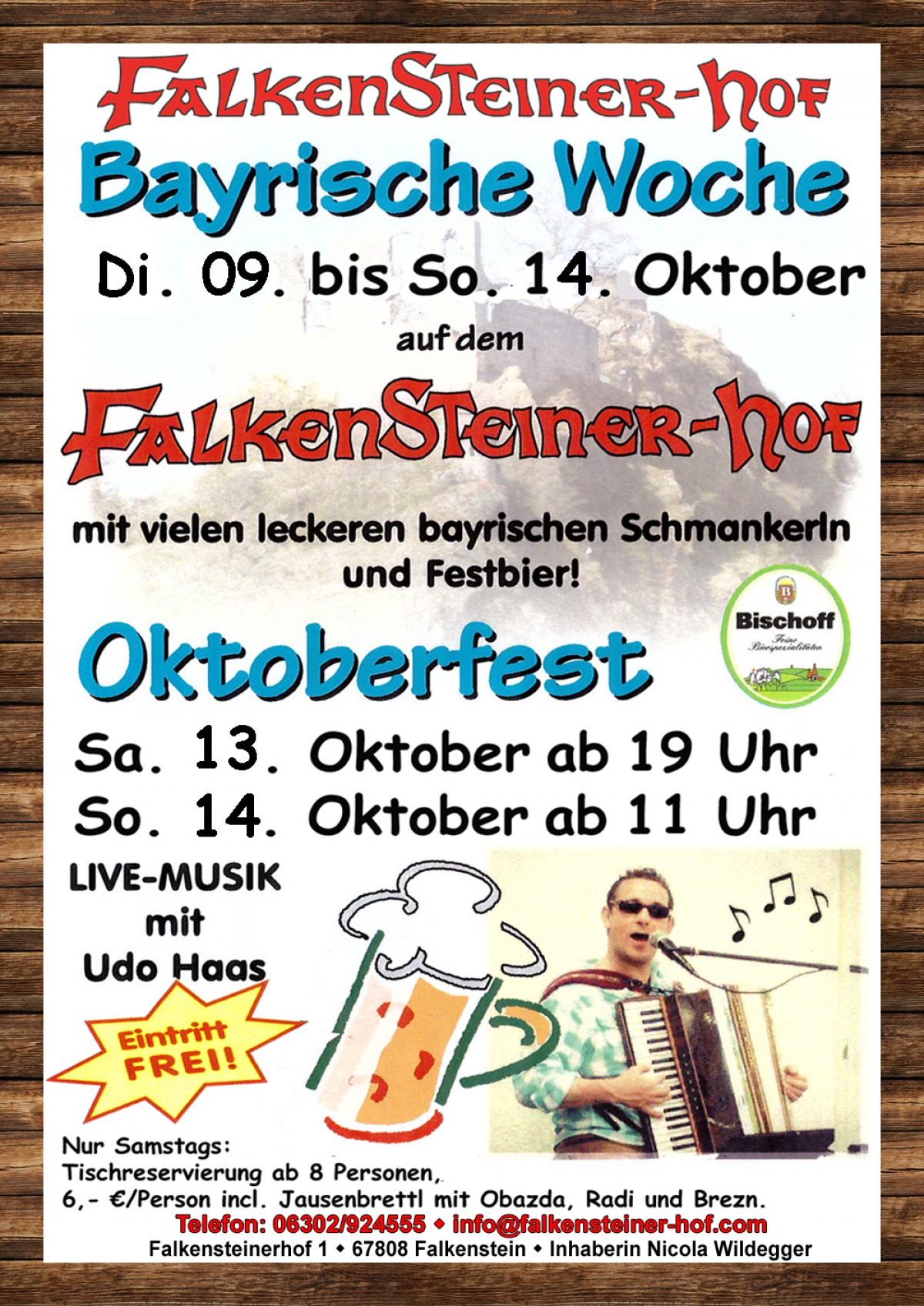 Mit vielen leckeren bayrischen Schmankerln wie Weißwürstl, Brezn, Haxn, natürlich Festbier und vielem mehr. Dazu Live-Musik mit unserem Udo Haas. Eintritt frei!