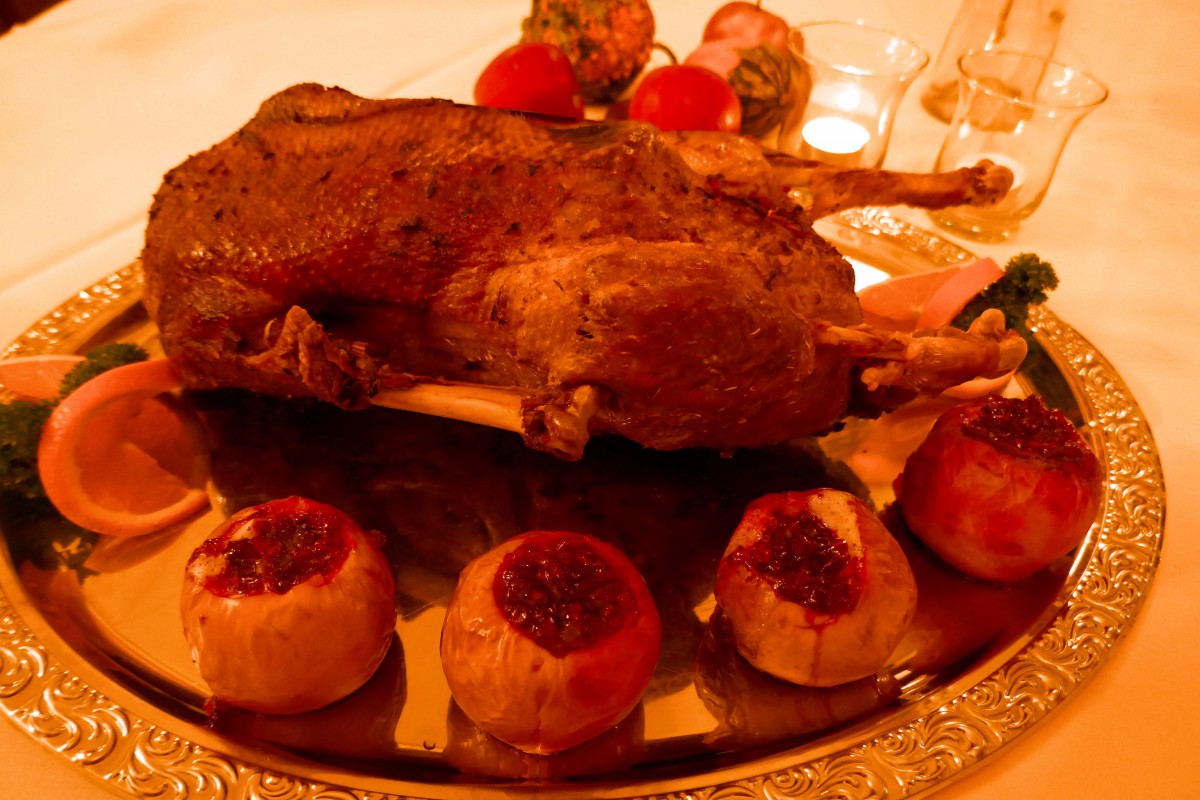 Kross gebratene Gänse frisch aus dem Ofen mit traditionellen Beilagen - Kartoffelklöße, Speck-Rosenkohl, Rotkaut und mehr. Reservierung unbedingt erforderlich, da wir Ihre Gans ganz frisch für Sie braten!