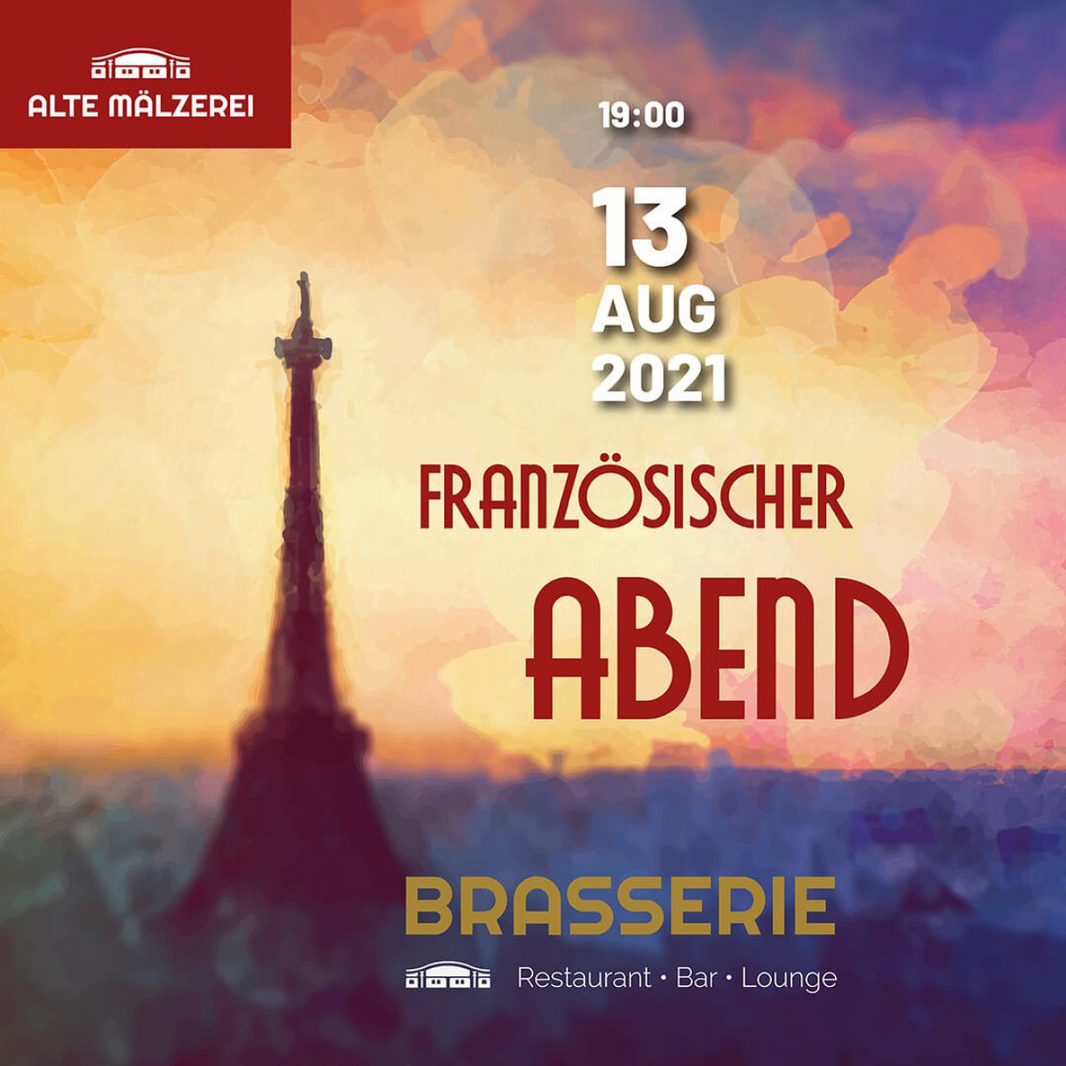 »Französischer Abend - Kulinarik & Musik« eine Veranstaltung von BRASSERIE: Restaurant - Bar - Lounge an der Alten Mälzerei in Mosbach exists ![]() Die Alte Mälzerei präsentiert am 13. August in der neugestalteten Brasserie – Restaurant – Bar – Lounge eine kulinarische Reise nach Frankreich. Begleiten Sie uns auf dieser genussvollen Reise und lassen Sie sich von unseren Chefköchen Marco Brodhäcker und Simon Seidel in 4 Gängen verwöhnen. Musikalisch umrahmt wird der Abend durch Live-Auftritte der bekannten Chansonnière Brigitte Oelke mit Ihrer Ausnahmestimme und dem Oelke-Zeiter-Trio.